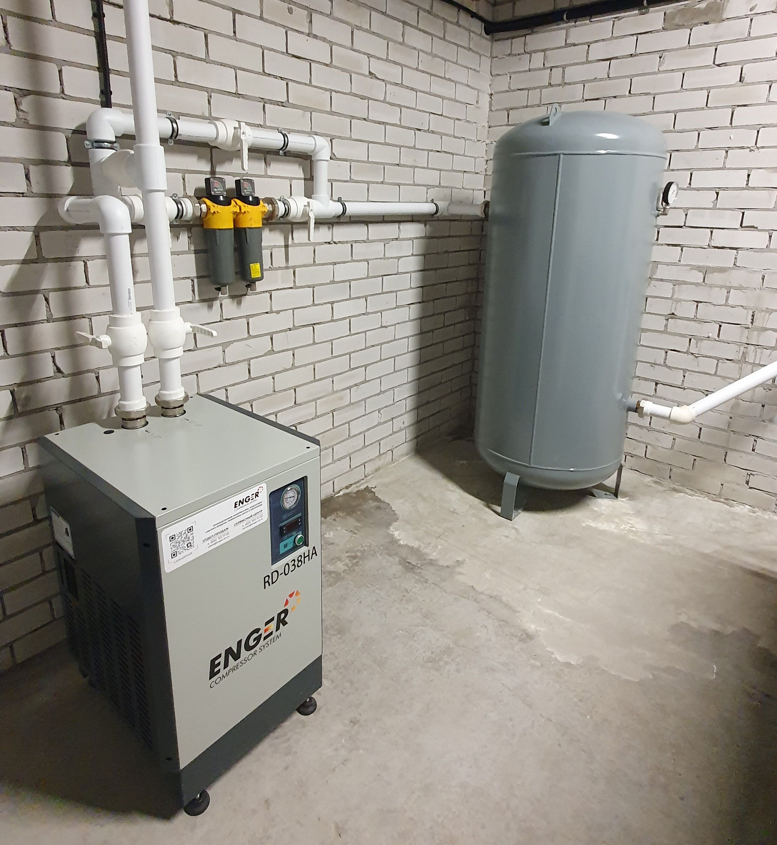 Винтовой компрессор Enger HB-22DFE 8 + рефрижераторный осушитель Enger RD-038HA + фильтры в сборе + вертикальный ресивер Enger РВ-900/10 — комплексное решение для компании, занимающейся металлообработкой.
